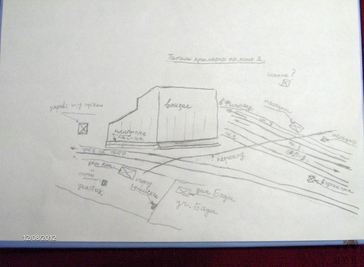 В конце 2012г. я попросил дочь Ирины Чучиной, чтобы ее мама нарисовала по памяти план ст. Белоостров и участки с домами и постройками Копытковских и Баум.