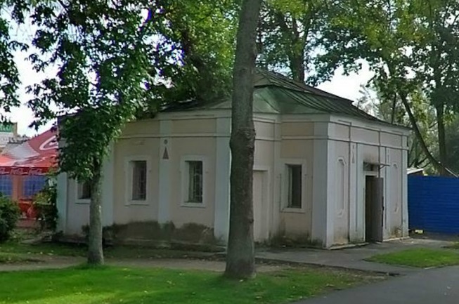 В недавнее время использовалось как туалет. Это вид со стороны соборного мостика. А фото 1943г. сделано с противоположной стороны, где на этом фото синий забор (со стороны Ольгиного пруда).