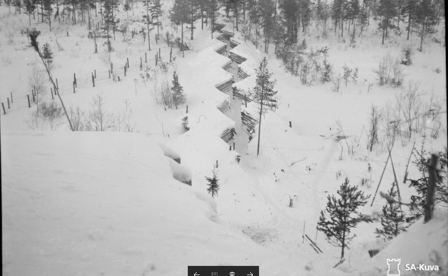 На финских фото видны какие-то сооружения из бревен. Они расположены к ручью Киварин перпендикулярно. На месте я остатков бревен не обнаружил, но и ручей было не перейти, чтобы посмотреть. Похоже на усиленный окоп-пт препятствие для отражения нашей возможной атаки в тыл по ручью.