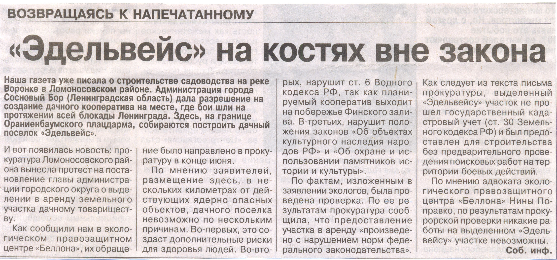 raevsku писал(а):Еще одна статья по садоводству на р. Воронке в "Санкт-Петербургских ведомостях". Надеюсь, оно никогда не будет построено.