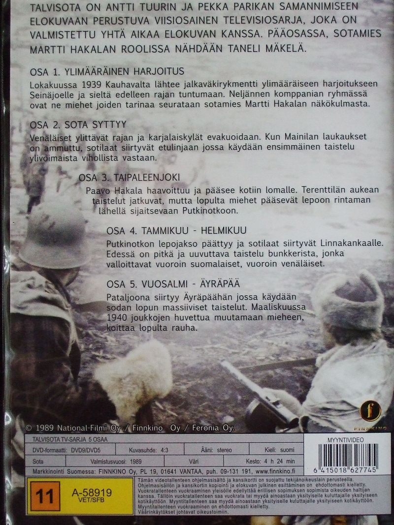 Следующий просмотренный фильмец называется очень просто – Talvisota. Телевизионный пятисерийный фильм. Финский язык, 1989 год. Вполне смотрибельное кино. Посмотрел все пять серий и ни разу не прокручивал ускоренно, хотя ни слова кроме сота и рюсся не понимал.
