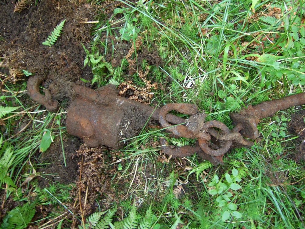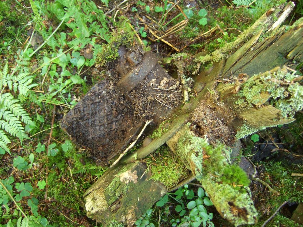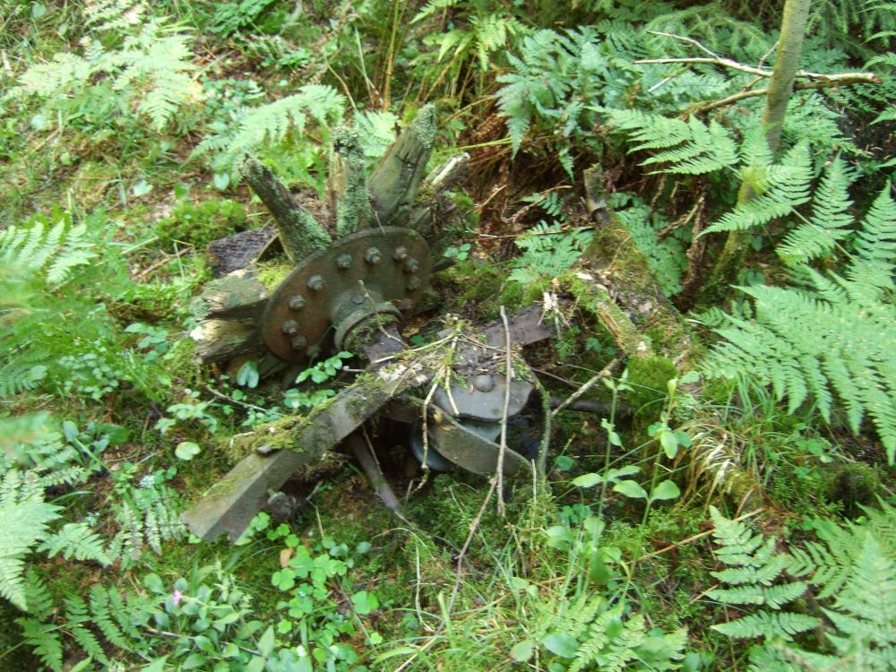 Вчерась прошелся по финским тылам в надежде собрать последождичных грибочков. Грибочков оказалось с гулькин палец. Пара десятков лис. Зато набрел на остатки финского транспортно-гужевого средства. К большой раме из хорошего металла прикреплены два колеса. Рядом валяются многочисленные железяки, смятые снарядные гильзы. Обнаружилась какая-то металлическая тяга с педалями!, еще всякие хрени. Метрах в 15 от этого хлама лежали еще два обода со ступицами. Диаметр каждого где-то метр тридцать. Хотел поставить два обода рядом и сфотографировать, но неожиданно взлетел рой потревоженных ос. Получил два боевых ранения в пальцы на разных руках. Пришлось позорно ретироваться.