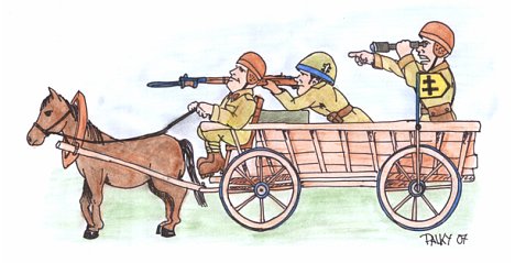 Посмотрел немецко-финскую кинохронику. Нашел нечто похожее. Четверка лошадей, к ней прицеплена таратайка двухколесная. На ней сидят по два-три человека, управляют лошадками. А к ней уже прицеплено орудие.