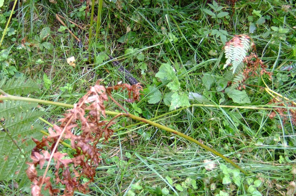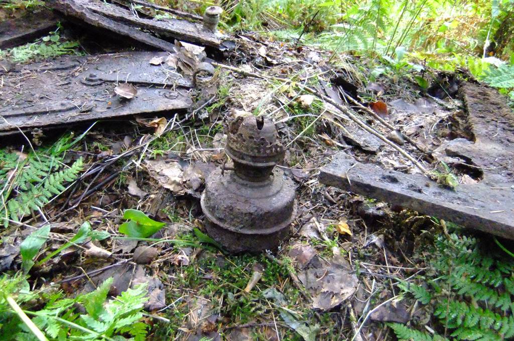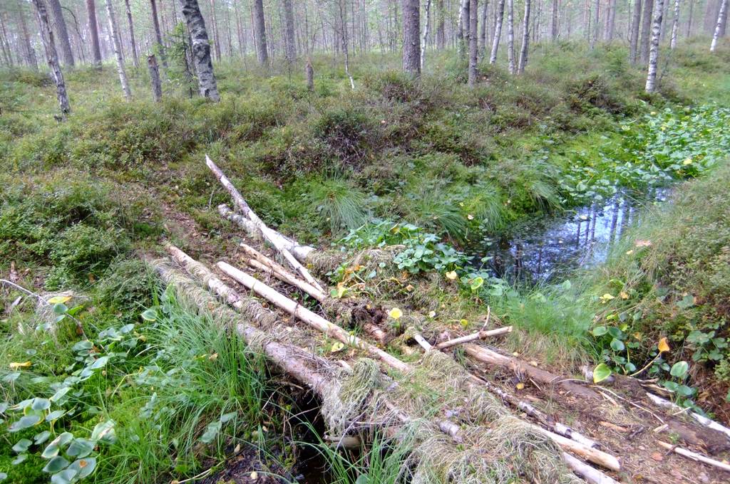 Уговорил LYNXa устроить экскурсию, чтобы посмотреть своими глазами наэтот самый финский передок. Сразу скажу, что самостоятельно, не имея координат, это место не найти. Да и наткнуться случайно вероятность минимальна. Этот участок леса - малопосещаемый, не грибной и не ягодный. Правда через него проходит дорога от Заболотья до болота Vitrijarvensuo, и по ней, судя по всему, ходят на это самое болото, в чём мы позже и убедились. Но разгромленный передок - порядком в стороне. Рядом с ним тоже дорожка, после войны явно неиспользовавшаяся, сплошь заросла, и колея еле-еле видна. Вот здесь их, похоже, и накрыло. Бомбой или миной - есть вороночка. Ну, зафотали всю эту инсталляцию с разных сторон. А потом пошли к болоту и вышли к ручью Kajavaoja, вытекающему из Витриярви. Там-то как раз и встретился дедок лет 70 с велосипедом