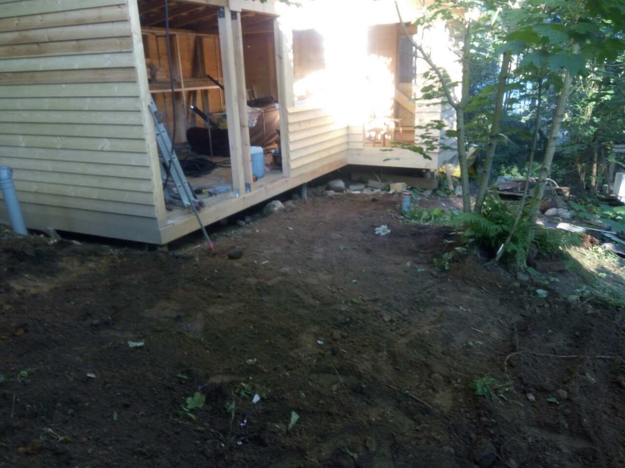 Выложу результат. 5*4 метра снято 30см. +траншея под ввод кабеля...