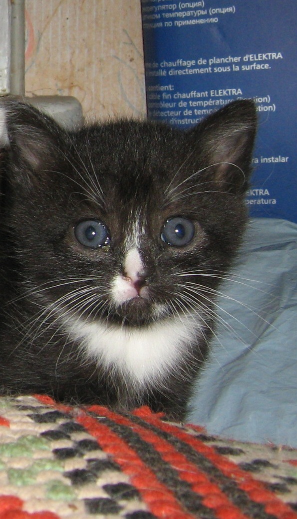 Котята :arrow: : серебристо-серый - мальчик, черный с белым - мальчик, черная с небольшими рыжими пятнышками - девочка. Котятам через пару дней - месяц. У девочки уже сейчас наблюдается очень спокойный характер, у черного мальчика очень любопытствующий нрав - ни минуты на месте, еле сфотографировала; серебристый - наверное самый красивый будет - весь в мать пошел.