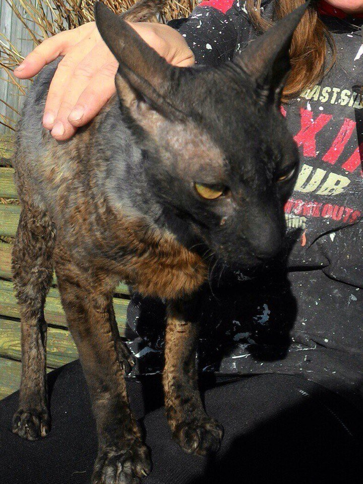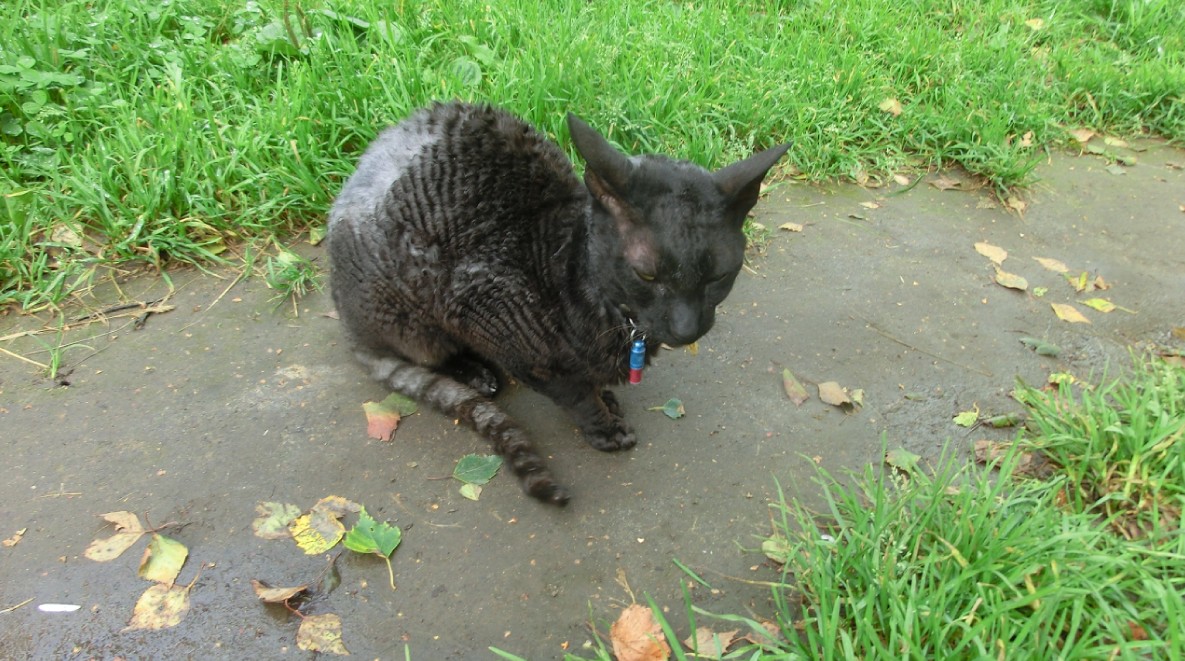 Из кисиных недостатков - порода похожая на волосатого сфинкса, черные короткие волнистые волосы как у негров Экваториальной Гвинеи, на задней части некоторые проплешины от лишая (?). Поэтому в руки брать не стал, чтобы посмотреть что же скрывается в открывашке для бутылок (хотя на руки просится не переставая).