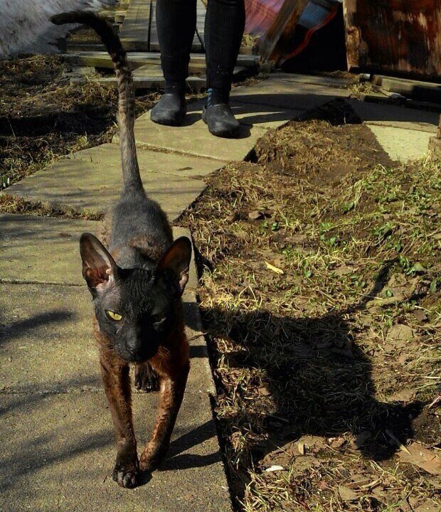 Наверное вы будете удивлены обилием корниш рексов в наших краях... Недавно опять появилась одна особа. Худая и такая же наглая, как и предыдущая. Постоянно просит жрать. Уже прыгает на руки. Если у кого убежала, то смотрите её фейс на фото. А то заберу себе, откормлю и продам потом по спекулятивной цене