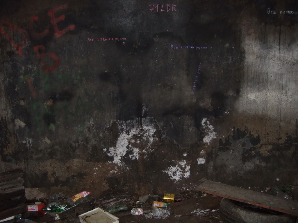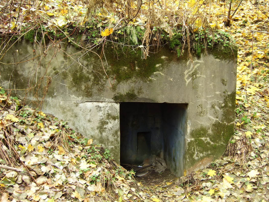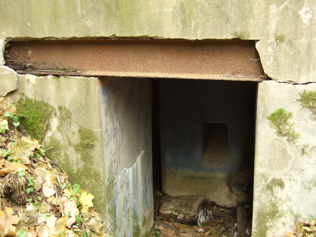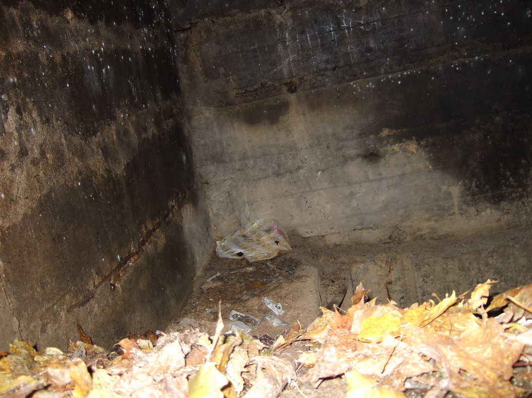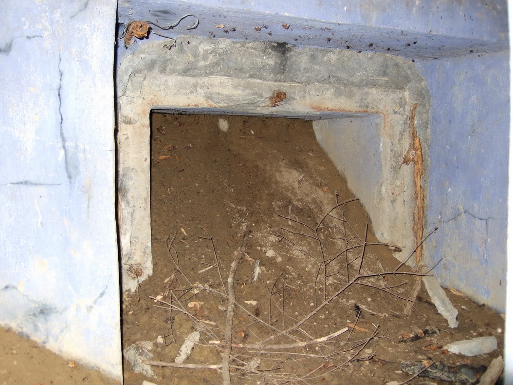 Со второго взгляда начинают возникать сомнения. Если заглянуть внутрь, то не видно никаких следов амбразуры (если бы она была заложена кирпичом и заштукатурена), нет противооткольного покрытия стен и потолка, отсутствует труба перископа, приблизительная директриса стрельбы 0 градусов.