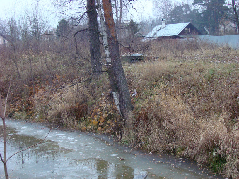 На фото видно, что дот подтоплен со всех сторон. Топит его, вероятно, вода из ближнего пруда, который является своего рода пожарным водоемом для подстанции.