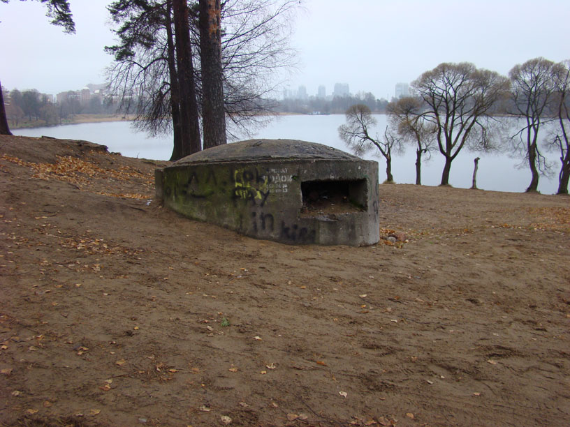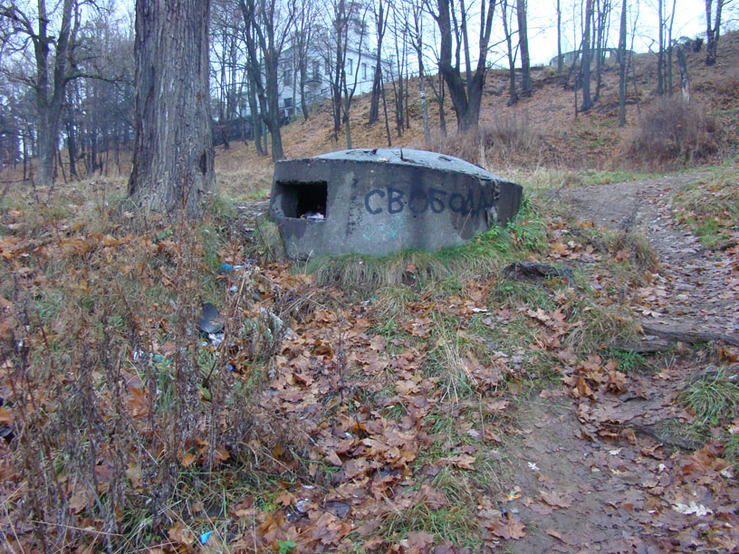 Сегодня удачно завершилась совместная с Буквоедом экспедиция в Шуваловский парк. Он находится в черте города, поэтому эта экспедиция подходит теме. В парке находятся несколько дотов и убежищ. Убежища, правда, могут быть входами в систему подземных сооружений, которые с большой долей вероятности могут находиться под усадьбой графов Шуваловых. Сейчас это не проверить, т.к. все входы засыпаны. Подземные сооружения создавались военными для ЗКП. Только вот кто пользовался этим ЗКП во время войны достоверно не известно. Доты прикрывали все это хозяйство. Их пять. Размеры небольшие, где-то два с копейкой на два с копейкой. Три дота находятся на территории усадьбы, которая принадлежит НИИ ТоковВысокойЧастоты. Два вне забора. На территорию НИИ не пройти. Суровая охрана. Только ползком и под покровом темноты. Но эти три дота видны из-за забора, можно сфотографировать.