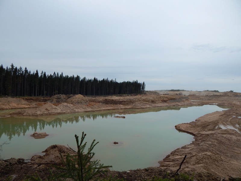 Карьер-то оказывается уже давно перешагнул через бетонку. Правда, сейчас работы там не ведутся - ни людей, ни техники. Непонятно только, закончили там копать, или прервались по каким-то причинам.