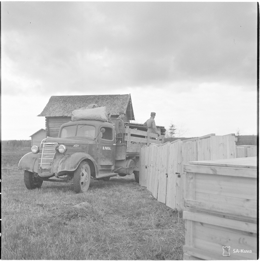 Грузовики из Хартонен. На последнем фото - Шевроле. На первом и втором снимке - машины одной марки, причем машина на первом снимке и машина на заднем плане со второго снимка - одинаковые. Она же на втором плане на третьем снимке. Газогенераторные, судя по торчащему вертикальному баку за кабиной. Нужно еще копнуть надписи на дверях - там фамилии владельцев.