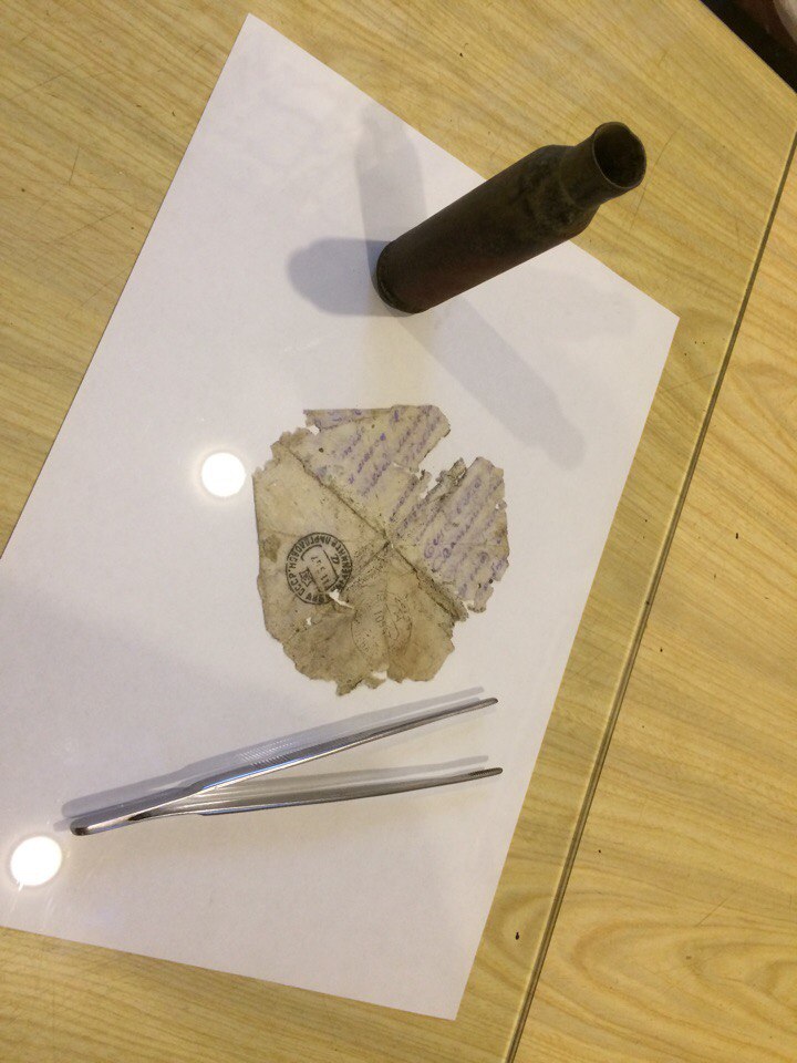 Дело тут вот в чем.Посмотрев на мой пост о найденном мною в патроне что то типа зубной коронки,Виталий tonteri решил пересмотреть найденные патроны в своей "шхере"и обнаружил в одном из них это письмо.Так что он помнит неточно-где он его откопал,к сожалению.