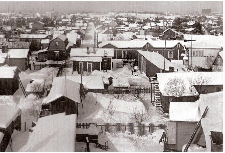 Для контраста Как сказано в подписи к фото, это "скромные деревянные дома, рассчитанные в основном на рабочий класс", в восточной части Выборга.