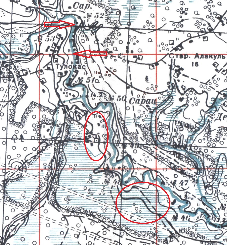 Старое русло помечено синенькой стрелочкой.