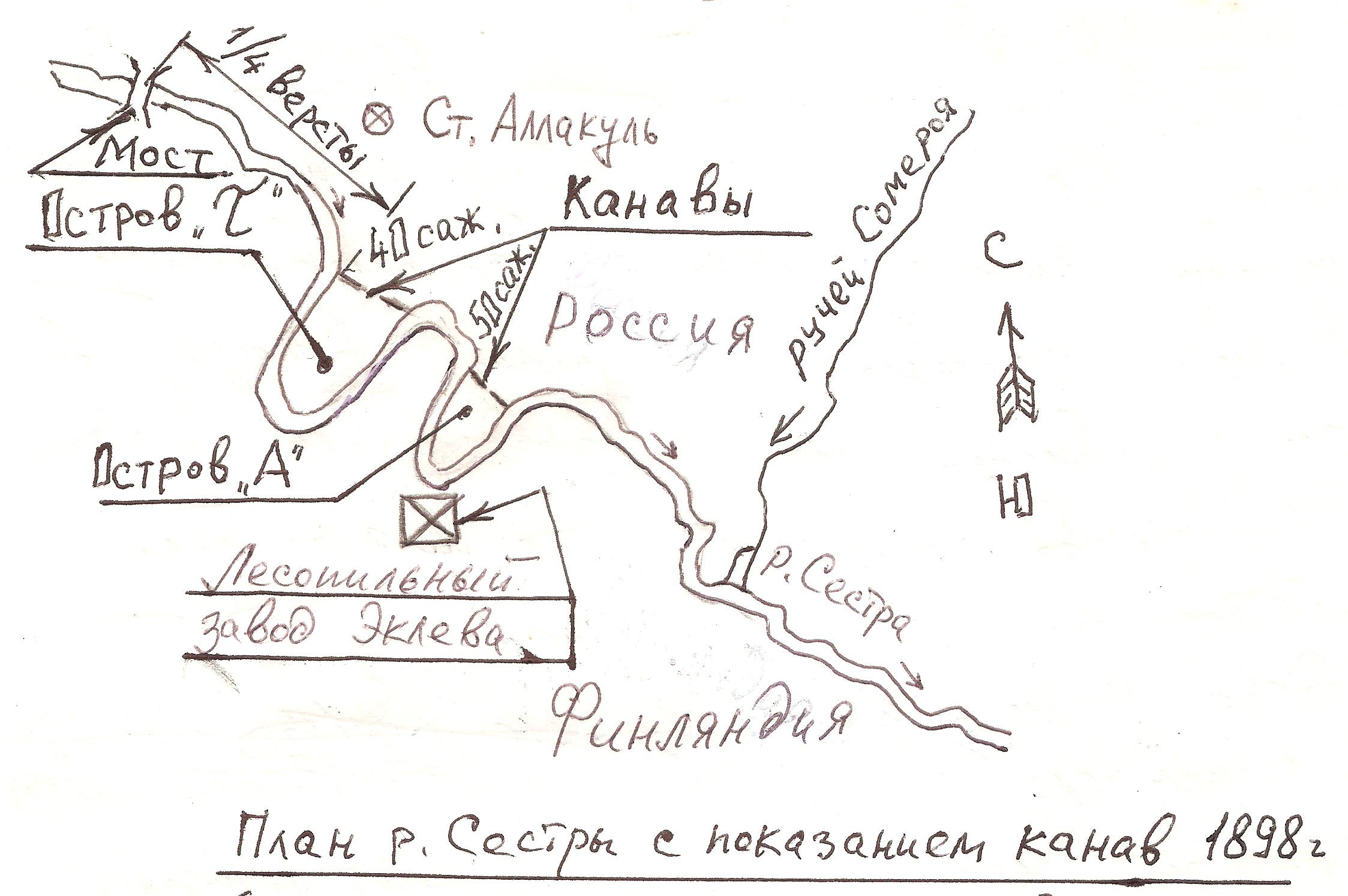Ниже прикрепил план р. Сестры (взято из архивного дела 1898г. с добавленными моими надписями).