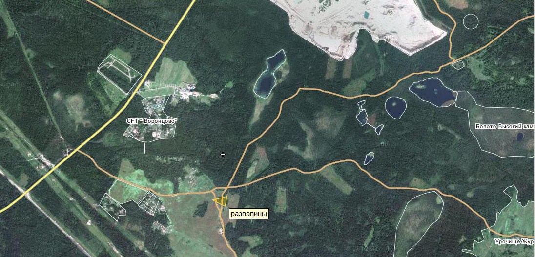 А Викимапия, ещё упоминая о Журавках как об урочище, на месте Воронцова показывает заросшую пустошь и комментирует: "развалины" (см.)