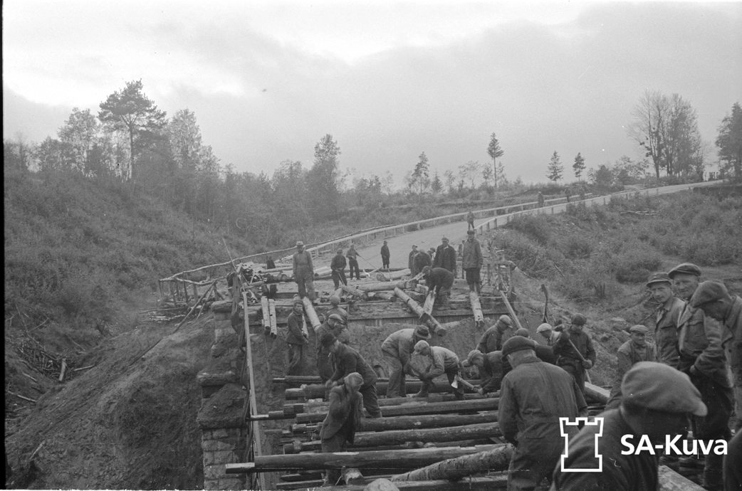 Вероятно, это самый первый ремонт моста, ткскть по горячим следам наступления. Итогом его стала уже известная нам классическая конструкция 1941 г. с использованием старых опор. Однако в дальнейшем она, похоже, не устроила финнов, или м.б. её разбомбили :roll: Так или иначе, в мае 1944 г. мост стоял уже не на старых опорах, а правее (если смотреть со стороны Яппиля).