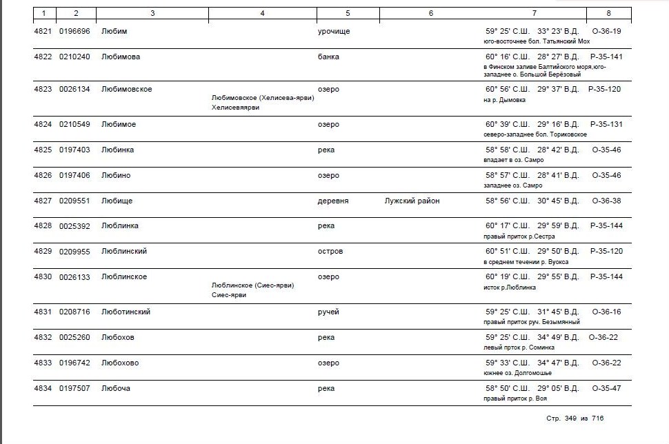 Страница из Реестра географических названий объектов Ленинградской области.