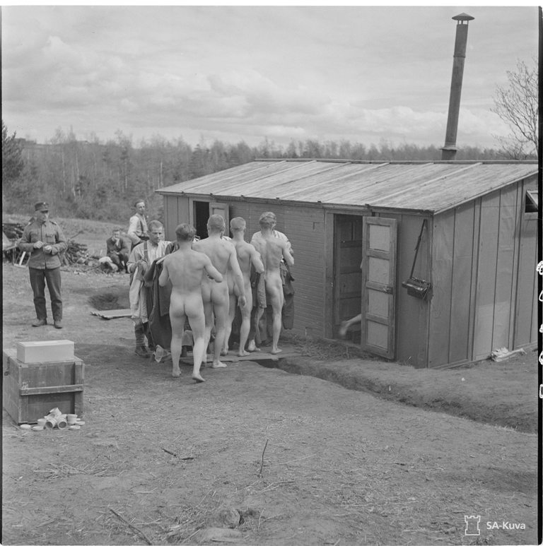 На берегах оказавшегося в тылу живописного озера оккупанты устроили пункт санобработки личного состава с дезинфекционными саунами и вошебойками.