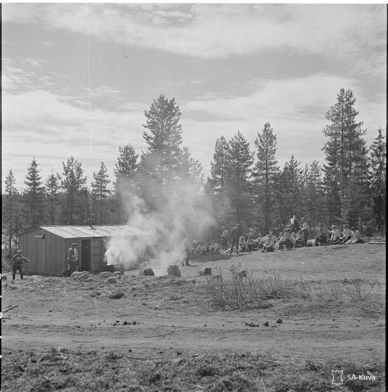 Стрелковые соревнования между 2-й и 18 дивизиями 08.07.1942. Общее построение перед началом. Все поют "Oi maamme, Suomi,..."