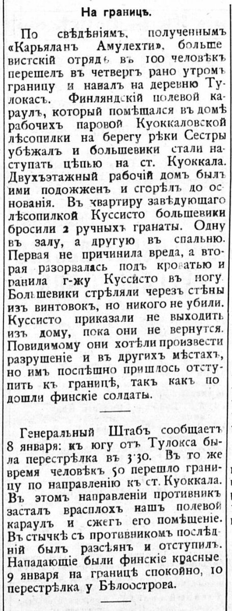 И вот в разгар Гражданской войны Отсакорпи делает свою покупку в горячей точке - на границе. В январе 1920 года на лесопилку напали большевики: