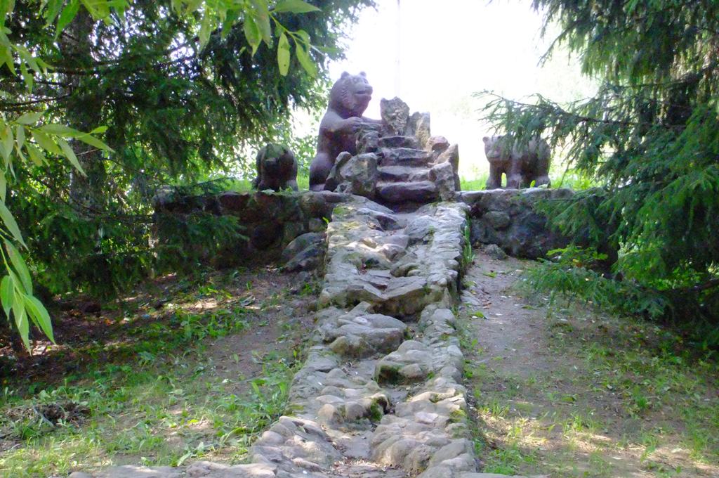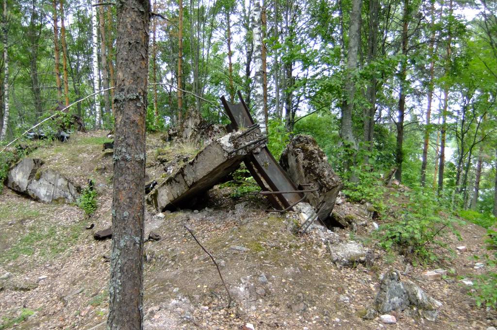 Дорога Лосево-Климово качеством похуже, но вполне терпима (чего не скажешь о дороге Климово-Барышево). От усадьбы коллонтаевского дедушки, сгоревшей несколько лет назад, остались развалины цокольного этажа и печная труба, а также одичавший замусоренный парк. По пути пересекли очень красивую р. Булатную, она же - известная Салменкайта. Сразу скажу, что осмотр фортификации одноимённого укрепузла в задачу не входил. Дорога, если не сворачивать в само Барышево, выводит в конечном итоге прямо к Вуоксе и к развалинам кирхи Эюряпяя. Последние - весьма впечатляющий хаос из железа и бетона (кирха постройки 20 в.). Рядом мемориал погибшим финским солдатам: несколько памятников, в т.ч. и от правительства Финляндии. На берегу Вуоксы - кемпинг рыболовов, с жёнами, детьми и собачками. На том берегу - Вуосалми. Уже дома, разбираясь в дополнительных матермалах, пожалели, что не свернули в собственно Барышево, б. Pölläkälä. До войны в нём было, оказывается, крупнейшее в Карелии лесопильное производство, один из двух тамошних заводов принадлежал концерну "Хакман" (тому же, что владел комбинатом в Йоханнесе). Население в 1930 г. составляло 2500 тыс. чел. Железная дорога имела отвтетвления и к заводам в Пёллякяля, и к паромной переправе в Эюряпяя. Короче, надо думать, жизнь кипела...