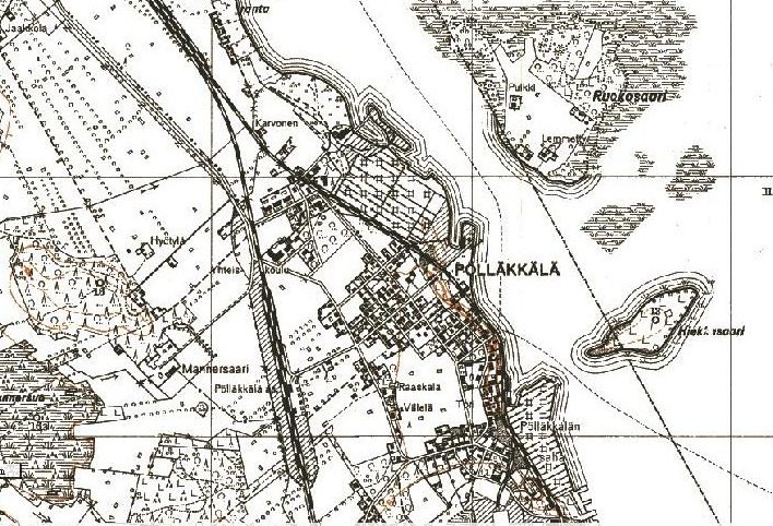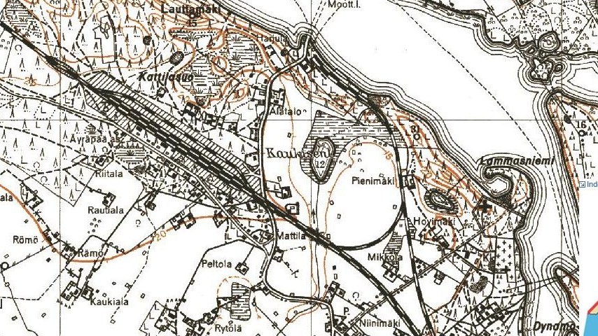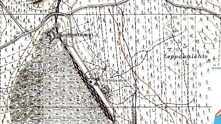 На финских картах Коприоя обозначена сокращением "Pys.", т.е. pysähtymispaikka, что переводится как "остановка". Да и поблизости селений не видно. Однако было целых три пути, множество построек, причём не только технологических.