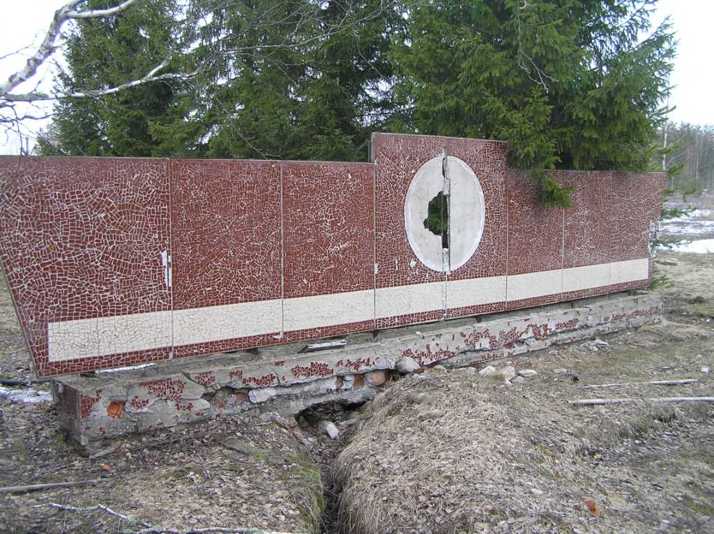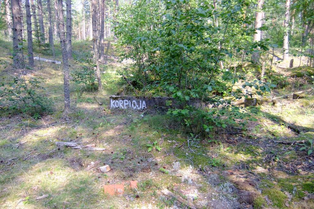 Здесь же отметим, что выбранный маршрут на Климово был верным, качество трассы вплоть до дороги Климово-Лосево отменное. Слева вдоль дороги открывается чудесный вид на Правдинское озеро, по пути - аккуратная деревня Красноозёрное/Punnus, не сохранившая, правда, каких-либо исторических построек. Зато имеющая симпатичный скверик с икебаной перед офисом тамошнего сельхозпредприятия. По пути за Красноозёрным увидели множество фундаментов по обе стороны шоссе. Оказалось - остатки станции, точнее остановочного пункта Korpioja.