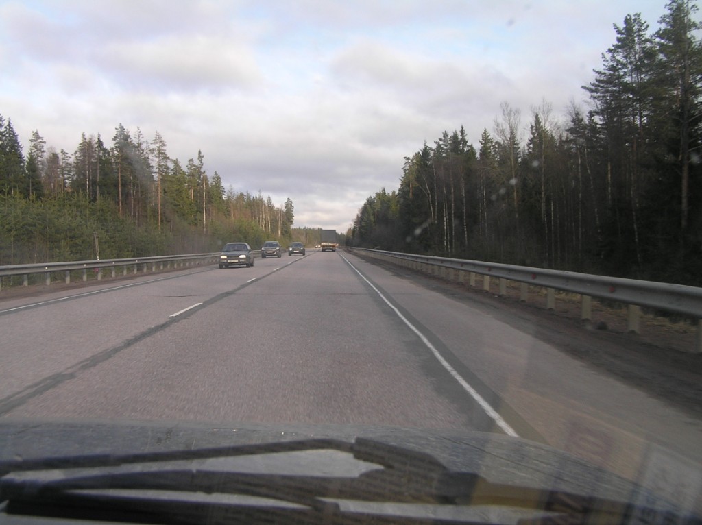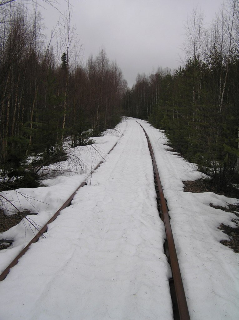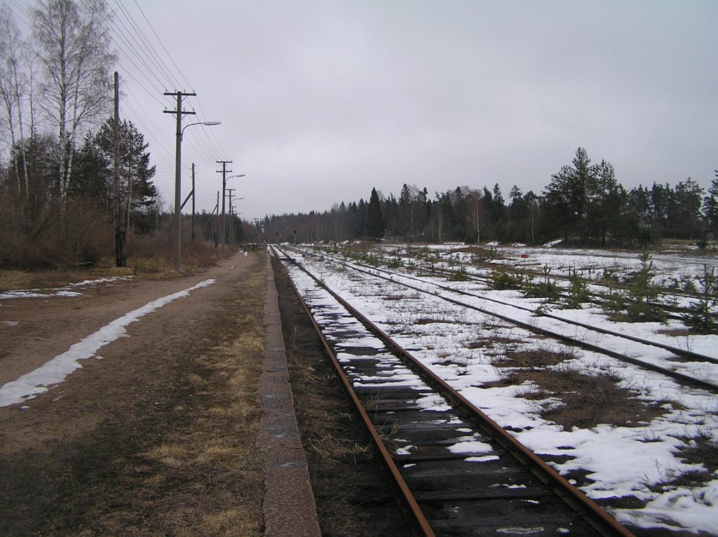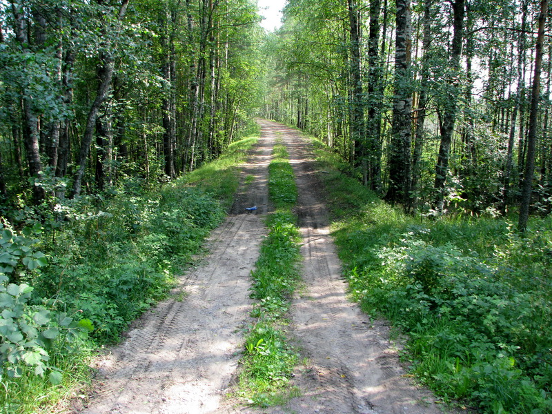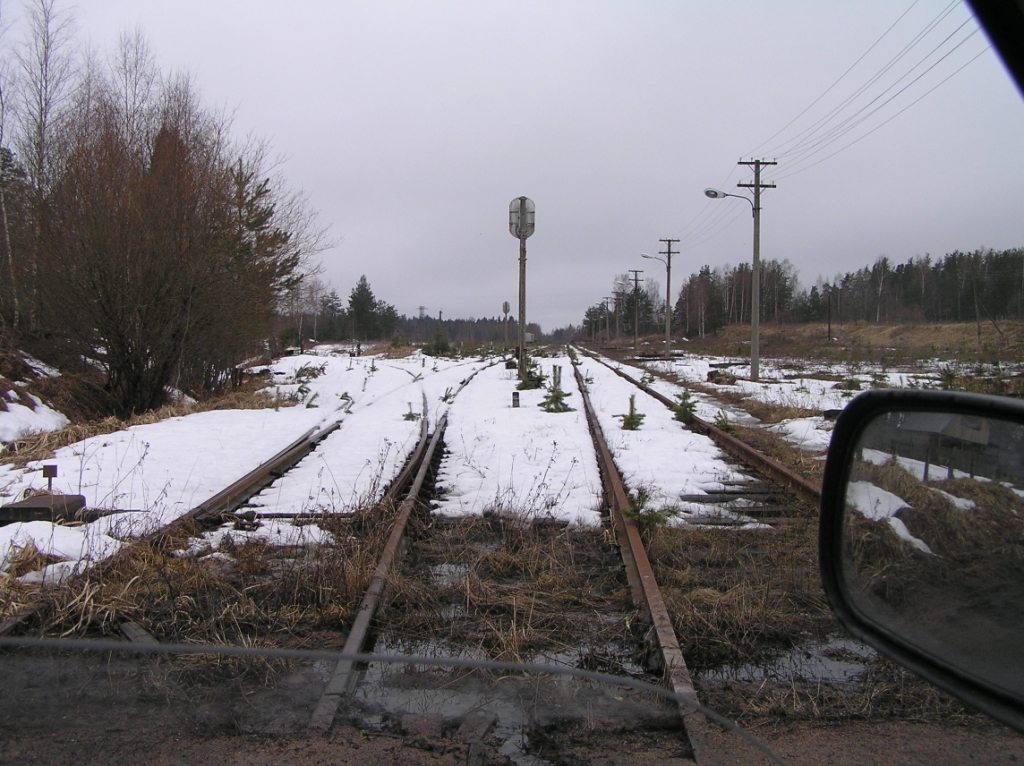 Чтобы не делать крюк через Смирново/Гончарово, нам нужно было попасть к ж/д станции Вещево. Туда должны были вести 2 грунтовки неизвестного качества длиной километров по 5. Это казалось преодолимым. Проехав Вещево, свернули на дальнюю и упёрлись в огромную лужу. Был объезд по лесу, но решили не рисковать. Вернулись обратно и повернули на ближнюю. Как потом по финским картам посмотрели, она и была в давнее время основной - дорогой от кирхи мимо кладбища. На сегодняшний день же - это узкая, горбатая, с глубокими лужами дорога, на которой на большем протяжении не разъехаться и не развернуться. Ну, в общем, обычная лесная дорога, на которую если заехал, то нет уверенности, что доедешь до конца или вернёшься. Я был готов уже ехать крюком, если честно. И тут на встречу выехал Фокус, который поведал, что дорога "ну, нормальная, ну, цепляет, да.." "18 километров ехал четыре часа..". Короче, я решил, что раз Фокус проехал, то и мы проедем. Проехали. За всё время не попался навстречу ни один автомобиль, ни один человек. Как говорится, "полчаса позора и ты на работе". В данном случае - полчаса небольшого экстрима - и ты на станции Вещево. А дальше - благословенный асфальт.