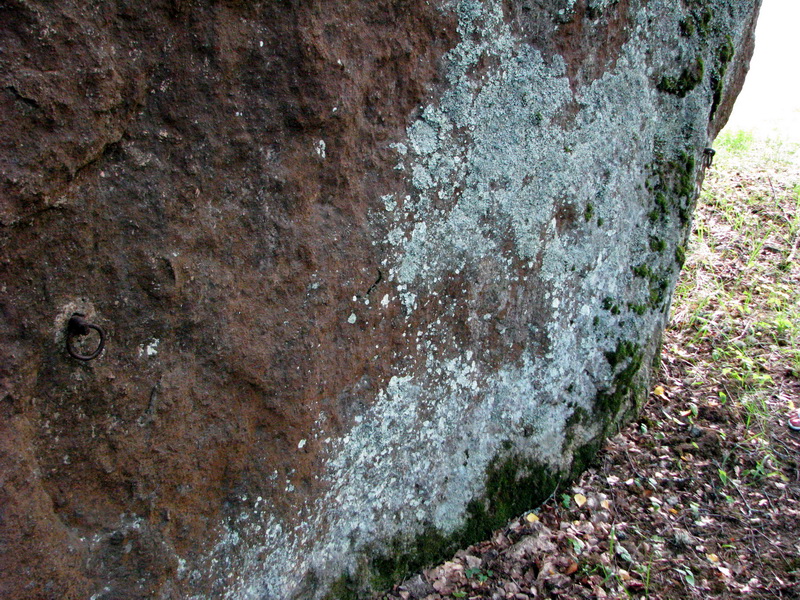 Далее - главное. При въезде на площадь находится огромный валун, который, как пишут, является самым большим в Финляндии. Он называется Sormuskivi. Высота его - ну, этажа три. Возможно, он и является каким-то древним культовым, но, как ни странно, об этом ничего не сказано. Табличка на нём говорит лишь о том, что 13.10.1939 мужчины ушли отсюда на войну. Ещё в камень вделаны кольца. Говорят, в знак привязанности ушедших к месту и для того, чтоб они вернулись..