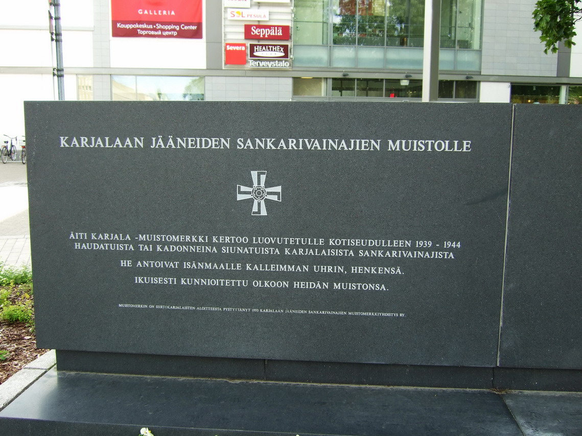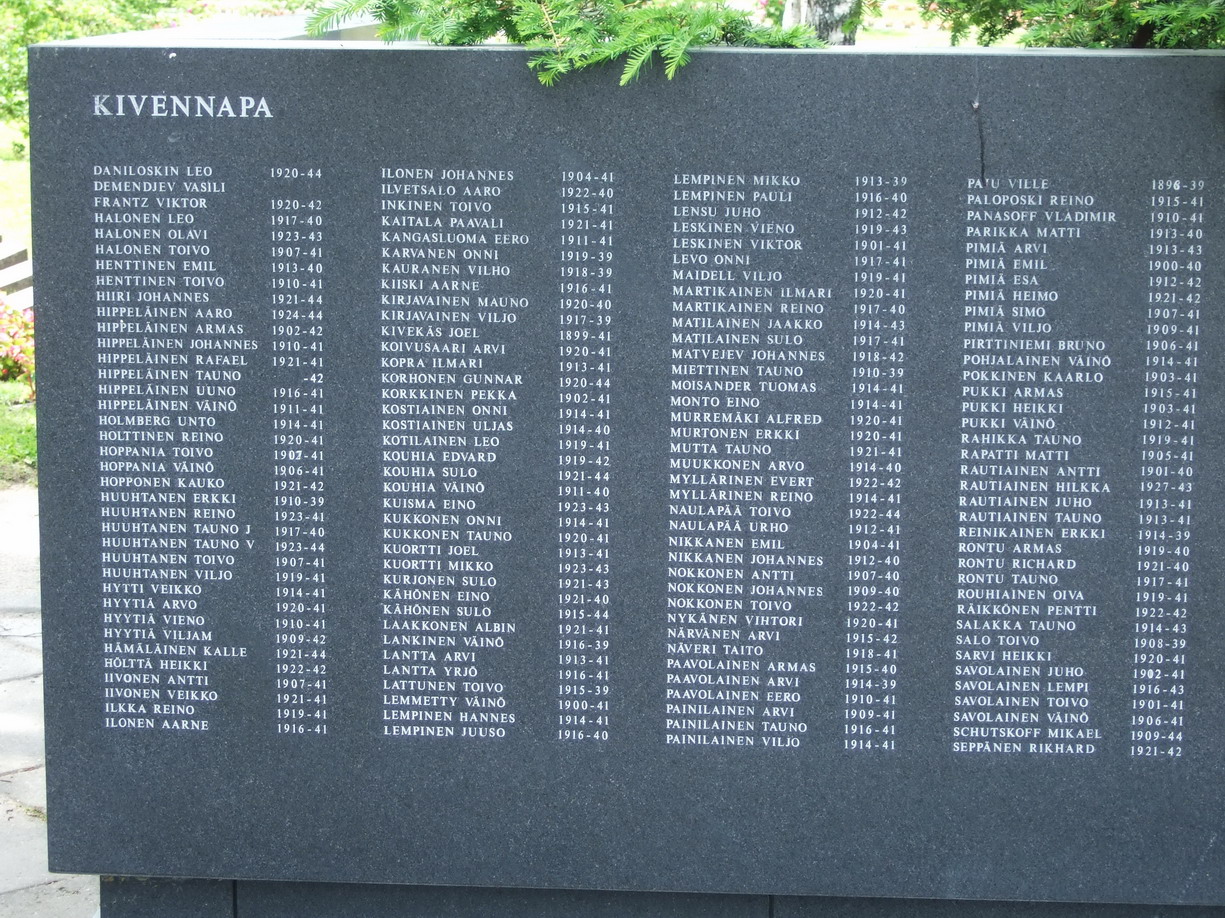В центре Лапеенранты есть городское кладбище. И на нем имеется военный мемориал погибшим жителям города. На гранитных плитах не одна сотня фамилий. Причем расположены они по местам гибели. В районе Кивеннапы столько-то, в районе Рауту столько-то и т.д. Оказалось, что у меня только одна фотография основной плиты. Потом как-нибудь дополню