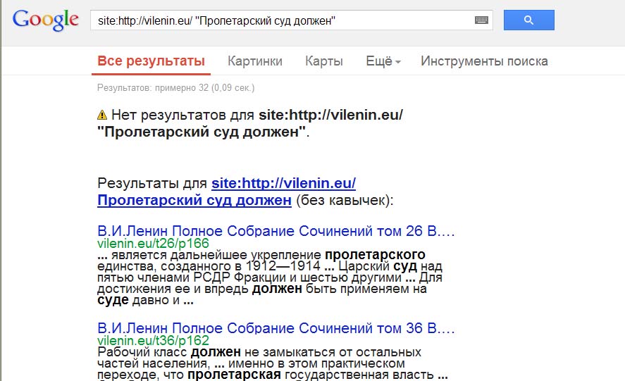В ПСС Ленина вообще не встерчается ни разу даже просто сочетания слов "пролетарский суд должен". Цитата ложная.краевед эксперт писал(а):Возжно ли найти через интернет источник в трудах Ленина по фразе?