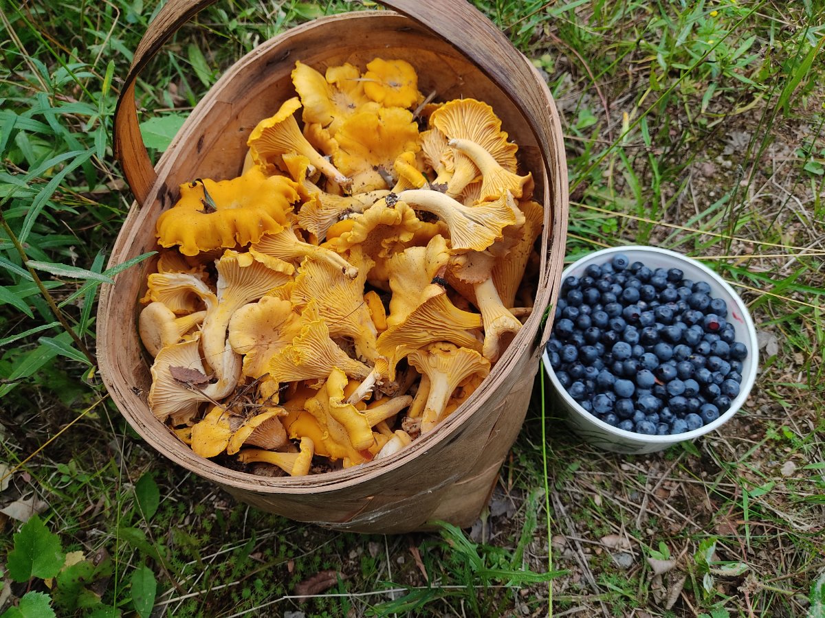 В субботу набрал корзинку за Пасторским: лисички, три подберезовика, несколько моховиков. Также пособирал клюкву полчаса, ее в этом году хватает. Причем лисичек достаточно, есть как старые, так и нововыросшие, маленькие. Дошел аж до Нахтоловского оз. и минут 15 поблеснил. Но это скорее для галочки: блесну не оборвал и на том спасибо. Клюква там особо крупная была. Время, к сожалению, поджимало, торопился в Рощино на футбол