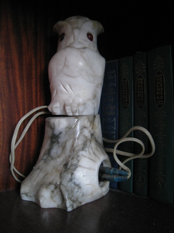 Ночник Сова из мрамора. В детстве очень нравились светящиеся красным глаза...