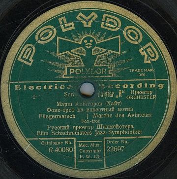 Тем не менее, написана она в 20-е, и, как я понимаю, таки звучала в 20-е. И не только в СССР. Мы тогда дружили с веймарской Германией, и есть мнение, что под музыку Хайта маршировали не только красвоенлёты, но и практиковавшиеся в липецком авиацентре будущие асы люфтваффе. Во всяком случае, музычка дошла до Берлина, где и была записана в исполнении Русского оркестра Ефима Шахмейстера в 1929 г. Через несколько лет этот гешефт, по понятным причинам, вряд ли бы состоялся.