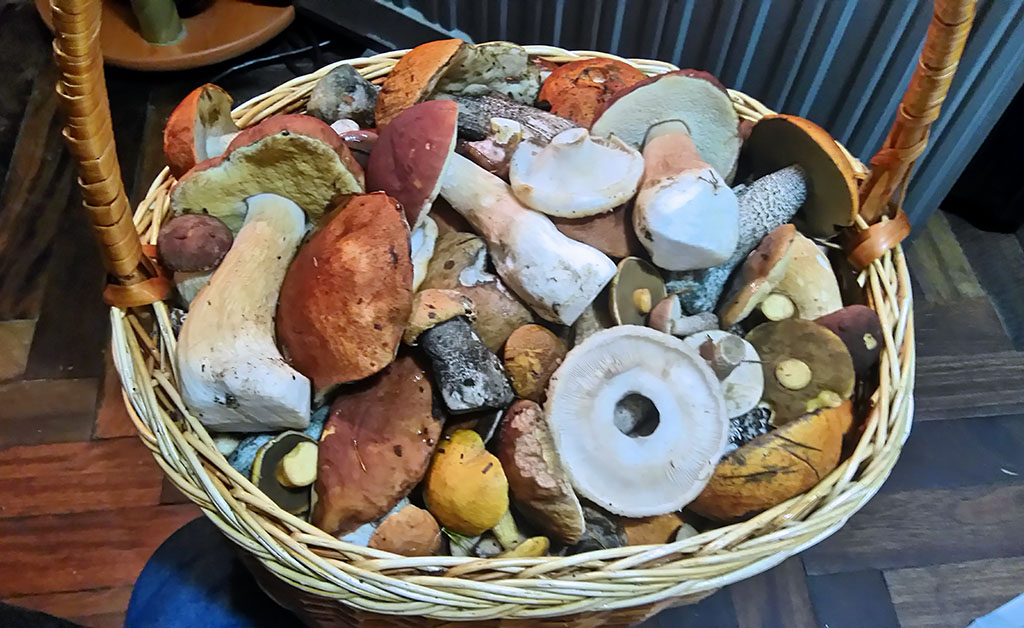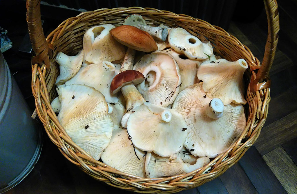 Появились боровики, пока что немного, более чем наполовину - червивые, в т.ч. и молодые. Присутствуют красные в небольшом количестве, встретил семейства совсем маленьких. Большие, с виду крепкие и красивые, внутри шляпки просверлены ходами червяков_мух. Есть подберезовики, нашел несколько моховиков, десяток маслят. Остатки груздевого слойчика - взято несколько десятков груздей. Потихоньку набрал 2/3 корзинки. Основной объем сбора представлен красными и подберями.