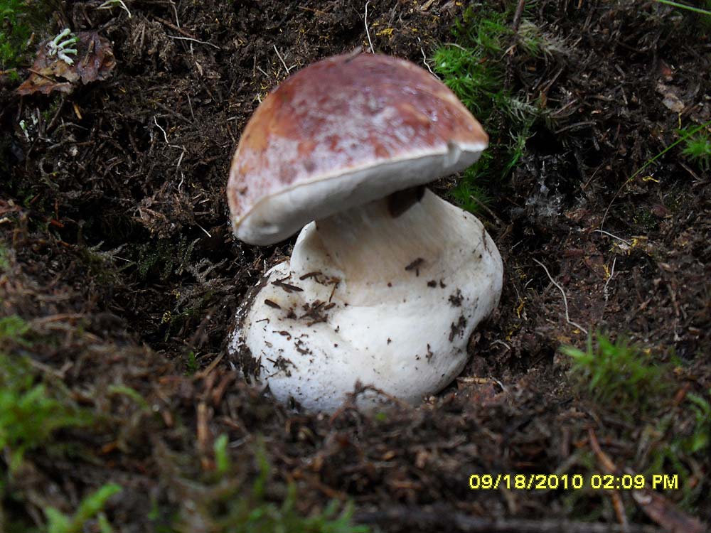 Нашёл сначала шляпку белого. При более подробном изучении объекта выяснилось, что и ножка под шляпкой имеется. Стал копать мох - поразился размерам ножки. Более поразился, когда таки выковырял на свет божий сей образчик. Этакий "папа"