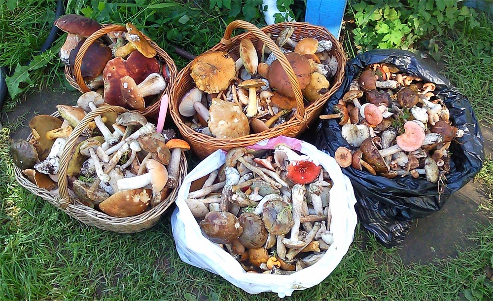 Нам удалось сгонять в лес ещё в пятницу и очень удачно. Были в окрестностях Ольшаников за Первомайском. Такого я уже давно не видела! Белофинны были везде, правда, в основном по склонам многочисленных оврагов и низин, в траве или зелёном мху. На сухих боровых возвышенностях их практически не было. Набрали очень много белых, сколько я не знаю, не считала, но очень много. Были и красноармейцы, но их меньше. Много подберезовиков. Ещё набрали наших любимых колпаков. Судя по тому, что к вечеру народу прибывало в эти края, то совершенно очевидно, что в субботу уже там делать было нечего.