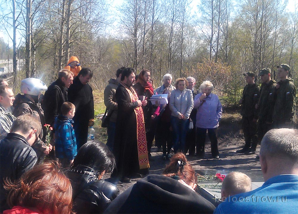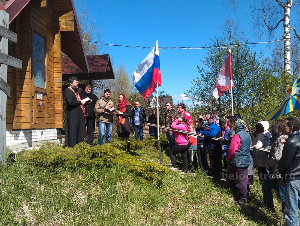 Отец Сергий отслужил молебен по павшим героям, окропил присутствующих святой водой. После военнослужащие из левашовской в/ч дали троекратный воинский салют из АКМ. После чего все неравнодушные садоводы, пообщавшись друг с другом и возложив цветы к памятнику, плавно переместились к часовне.