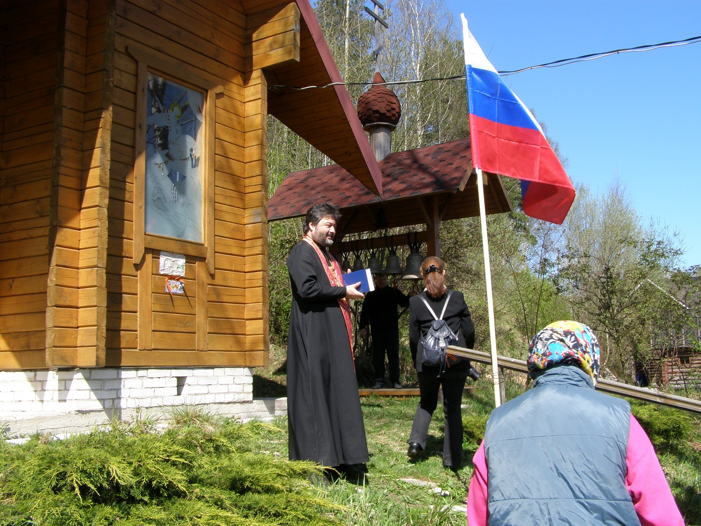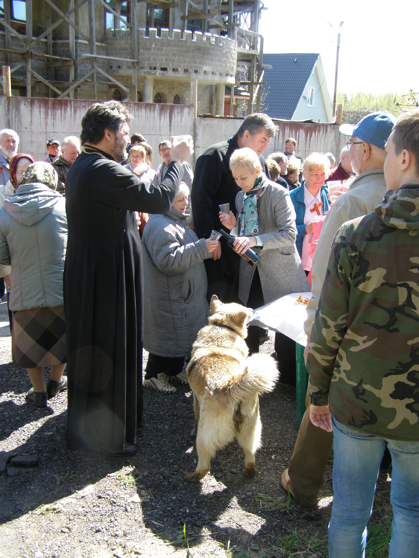 Около часа дня Отец Сергий поздравил всех пришедших с Великим Праздником, произнеся весьма сильную речь и отслужил торжественный молебен, упомянув в нем и память к погибшим и радость праздника Победы и, как обычно, упомянул и о не так уж и давно наступившей Пасхе Христовой. Святое окропление было столь обильным, да под чудесный колокольный благовест со звонницы, что сие наполнило всех присутствующих радостными эмоциями на весь день