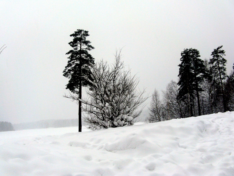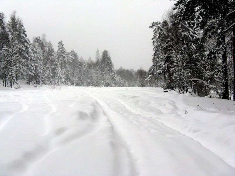 Можно доехать достаточно спокойно до забора бывшего пионерлагеря, дальше наезженная колея поворачивает влево, как мы полагаем в садоводство. До озера лучше добираться уже на своих двоих. Снег кое-где по пояс - надо брать лопату.