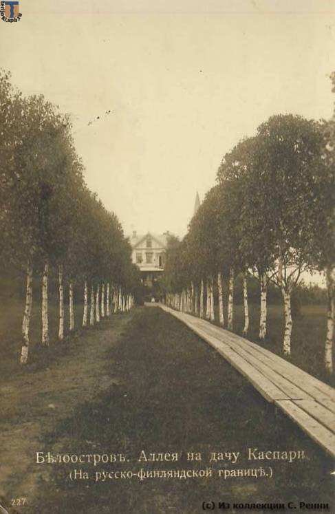 краевед эксперт писал(а):Между таможенным мостом и дачей Каспари по прямой линии была проложена еще пешеходная дорожка шириной около 0,8 м,составленная из 4-х досок, . На фото (есть на сайте) видна эта дорожка и березовая аллея.