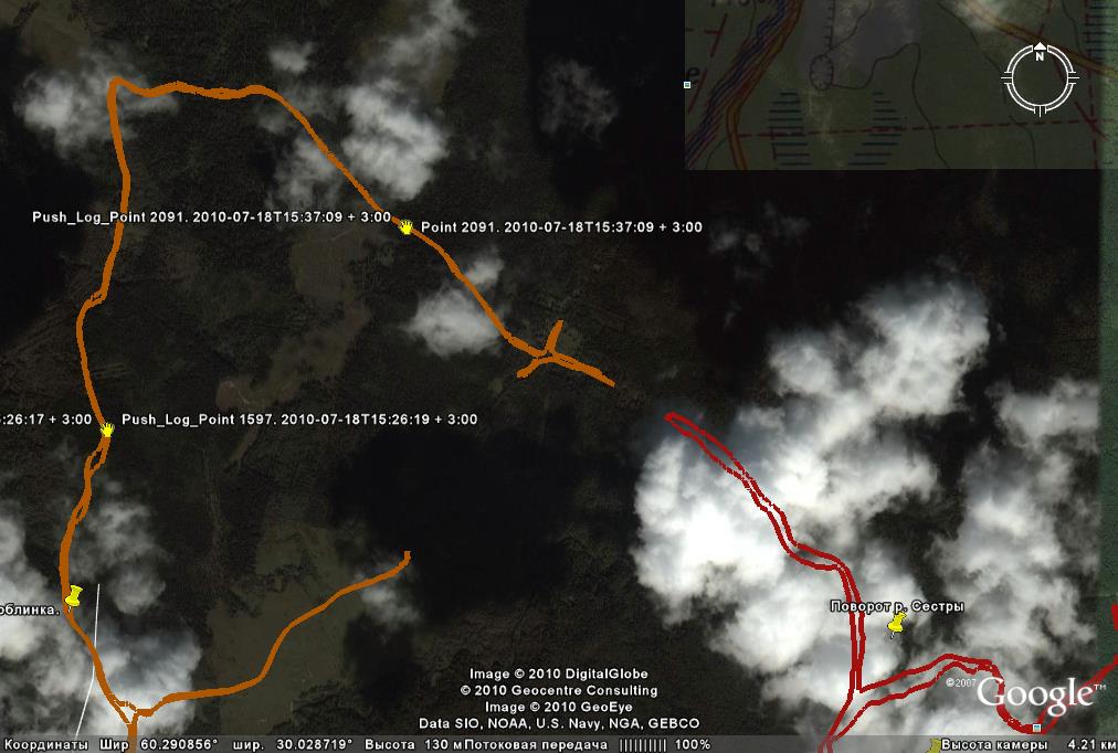 Отметил на карте желтым - как я ехал, сиреневым - новая дорога. От самолета в сторону разлива и термоловской петли не ездил.