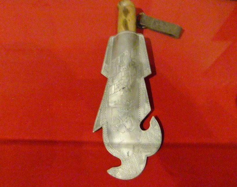 ...вот этим самым ножичком. Ножны изготовлены на досуге из обломков бомбардировщика СБ