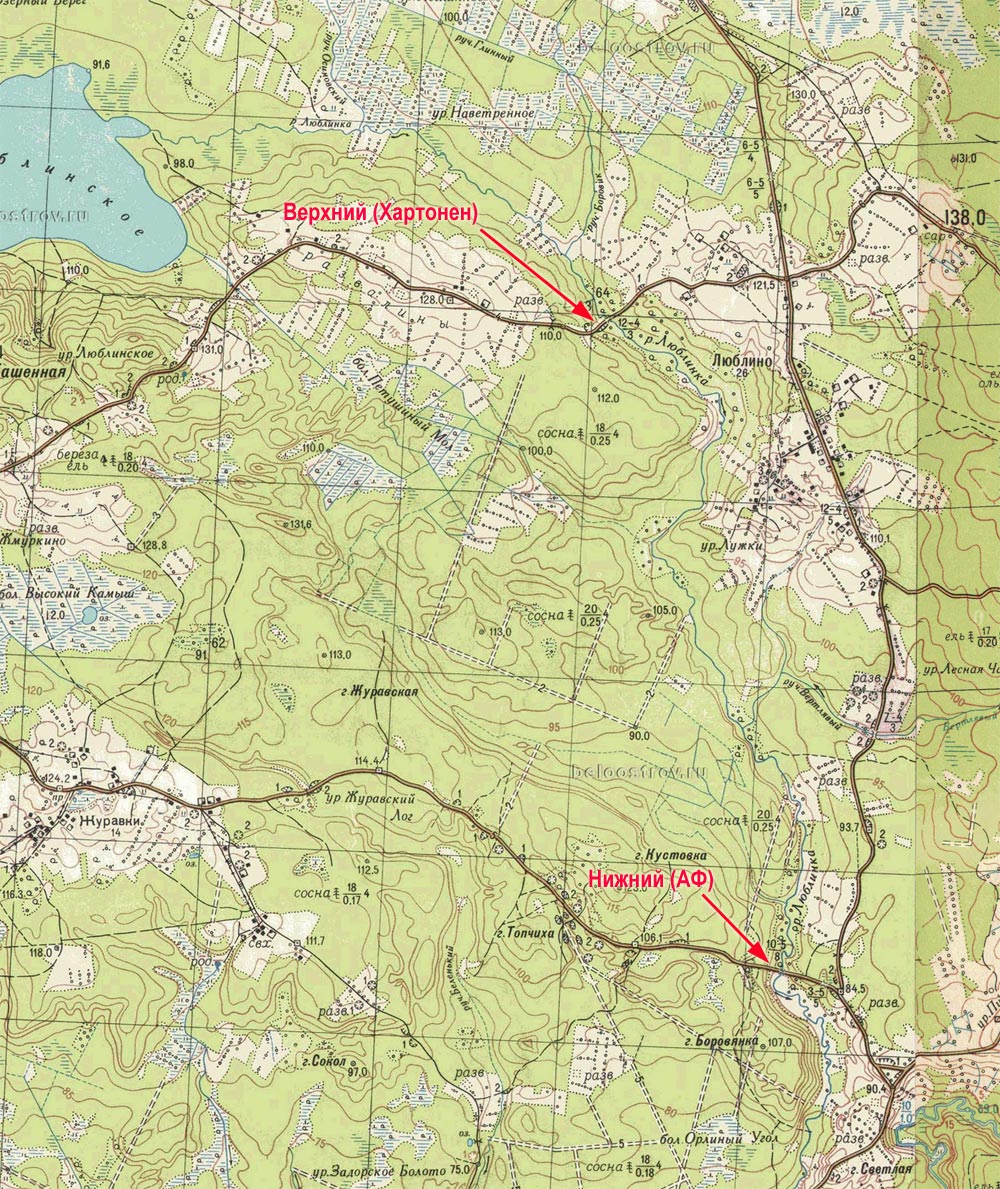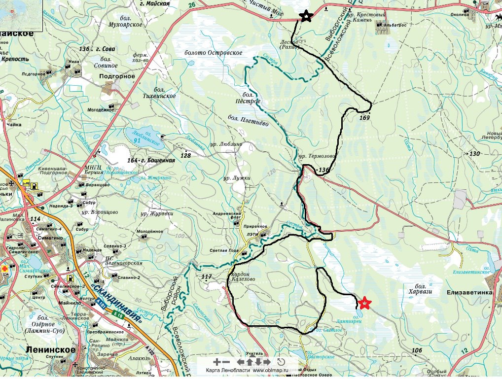 Старт был из Рахио,пересекли ручеёк Сестры.Далее Термолово-вторая танковая до дорожки вдоль Сестры-Калелово-первая танковая-брод через ручей-перемычка до второй танковой-Лампиярви.