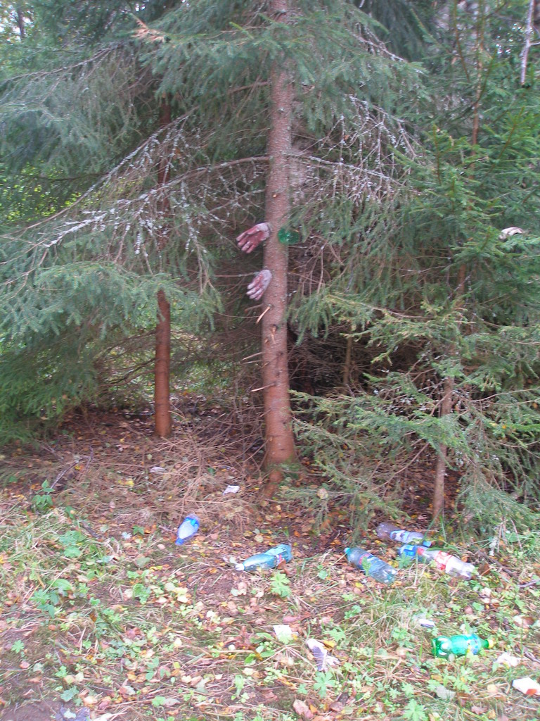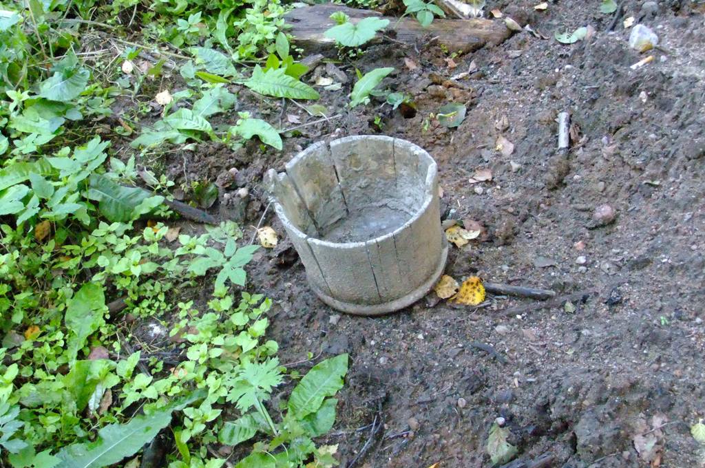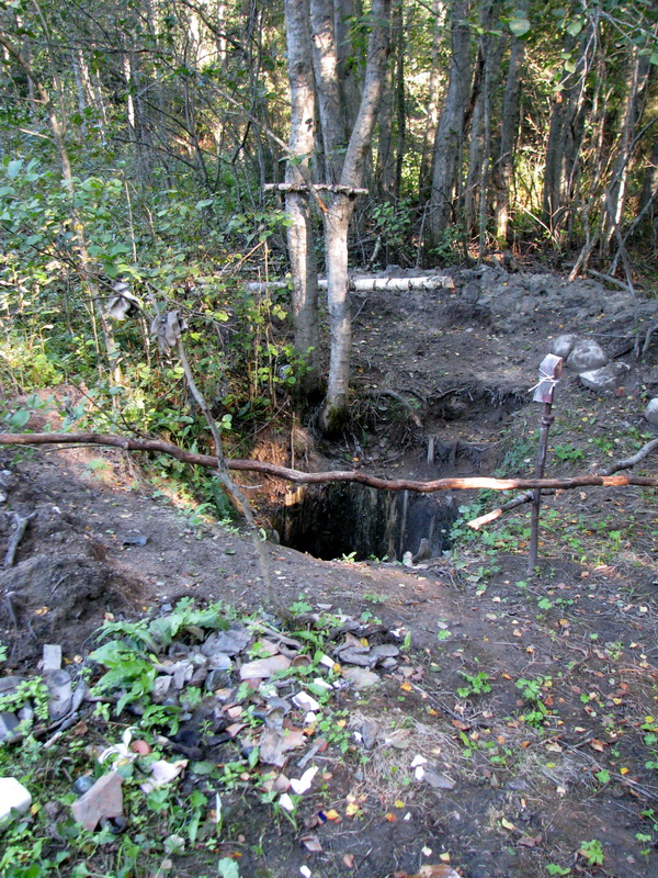 Когда я был в этом месте пару лет назад, мне оно казалось девственным. Были, конечно, следы копаний, но не в такой степени. Тут же - просто какое-то археологическое нашествие. Всё истоптано! А колодец - вообще центр чьих-то исследований. Там собраны в кучку все нарытые осколки, обломки, кости.. В прошлый раз я чуть не провалился в этот колодец, неожиданно появившийся у меня под ногами. В нём плавала довольная жаба, уровень воды был на полметра ниже верхнего края. Сейчас из него выкачана вода, совершенно однозначно и намерено выкачана.. Дорожки в лесу нахожены, благодаря чему погреб и был найден.