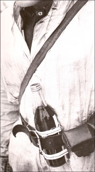 Белофинское фото- явно постановочное, "для красоты". В боевой обстановке вряд ли перемещались с бутылкой за поясом, это не граната, а стекляшка. Упал на камень или бревно, и разбилась