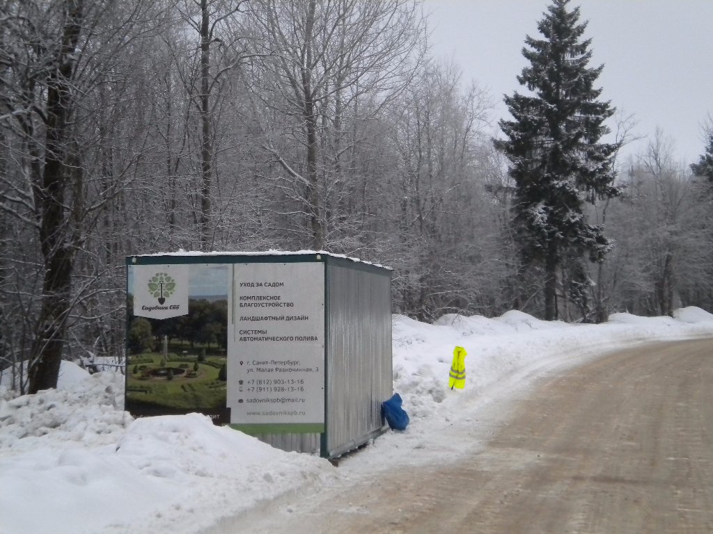 Судя по рекламе на контейнере, это никакая не охрана. Там реклама какого то озеленения... Может какой нибудь питомник растений сделают?